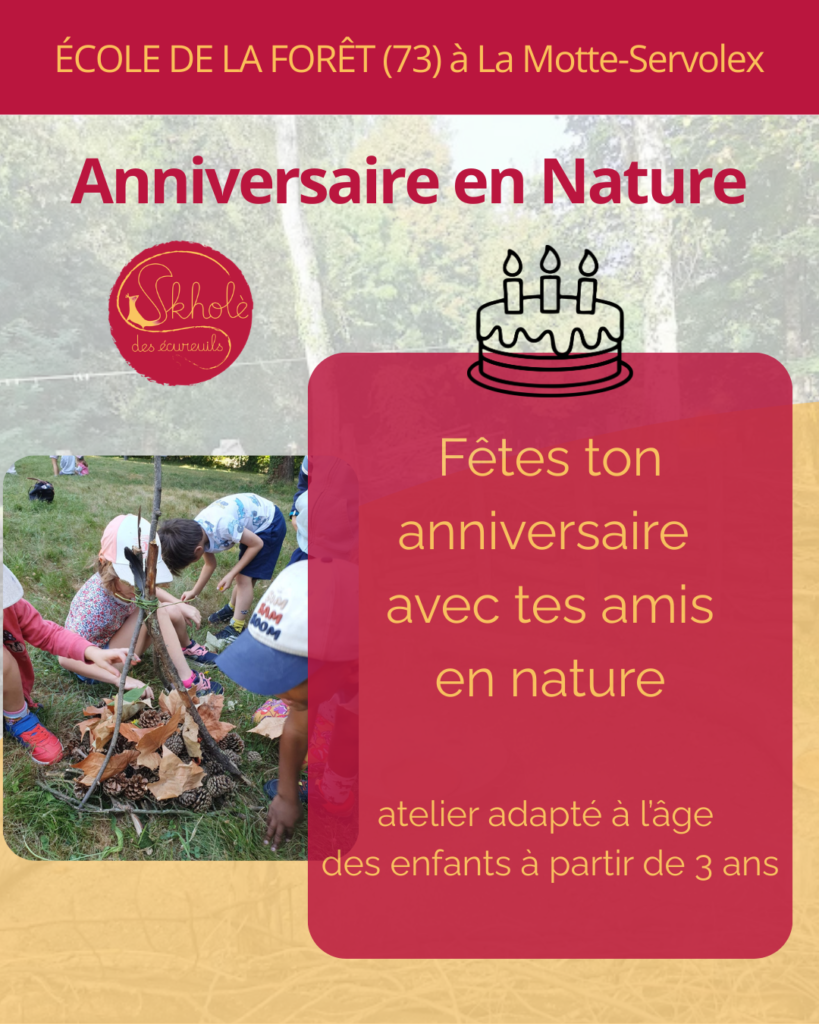 À l’École de la Forêt Savoie, la Skholè des écureuils, nous proposons de célébrer l’anniversaire de votre enfant en pleine nature, dans un cadre boisé, sécurisant et inspirant.